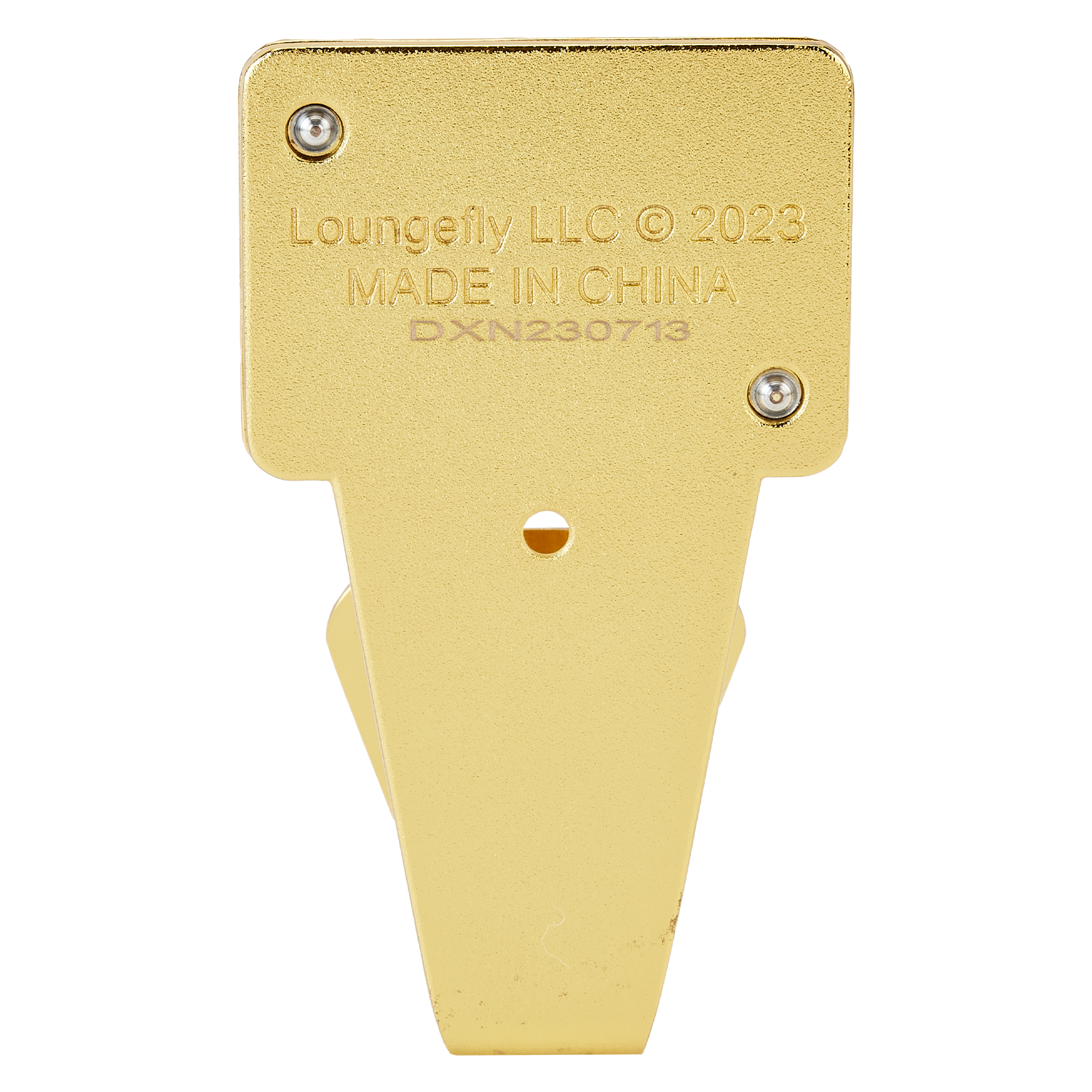 Give your favorite Loungefly bag a stylish lift with our Loungefly Gold Metal Wall Hook. This wall accessory features the signature Loungefly plaque and sturdy gold-colored metal backing and hook. It’s perfect for displaying and organizing Loungefly bags and apparel, effortlessly.