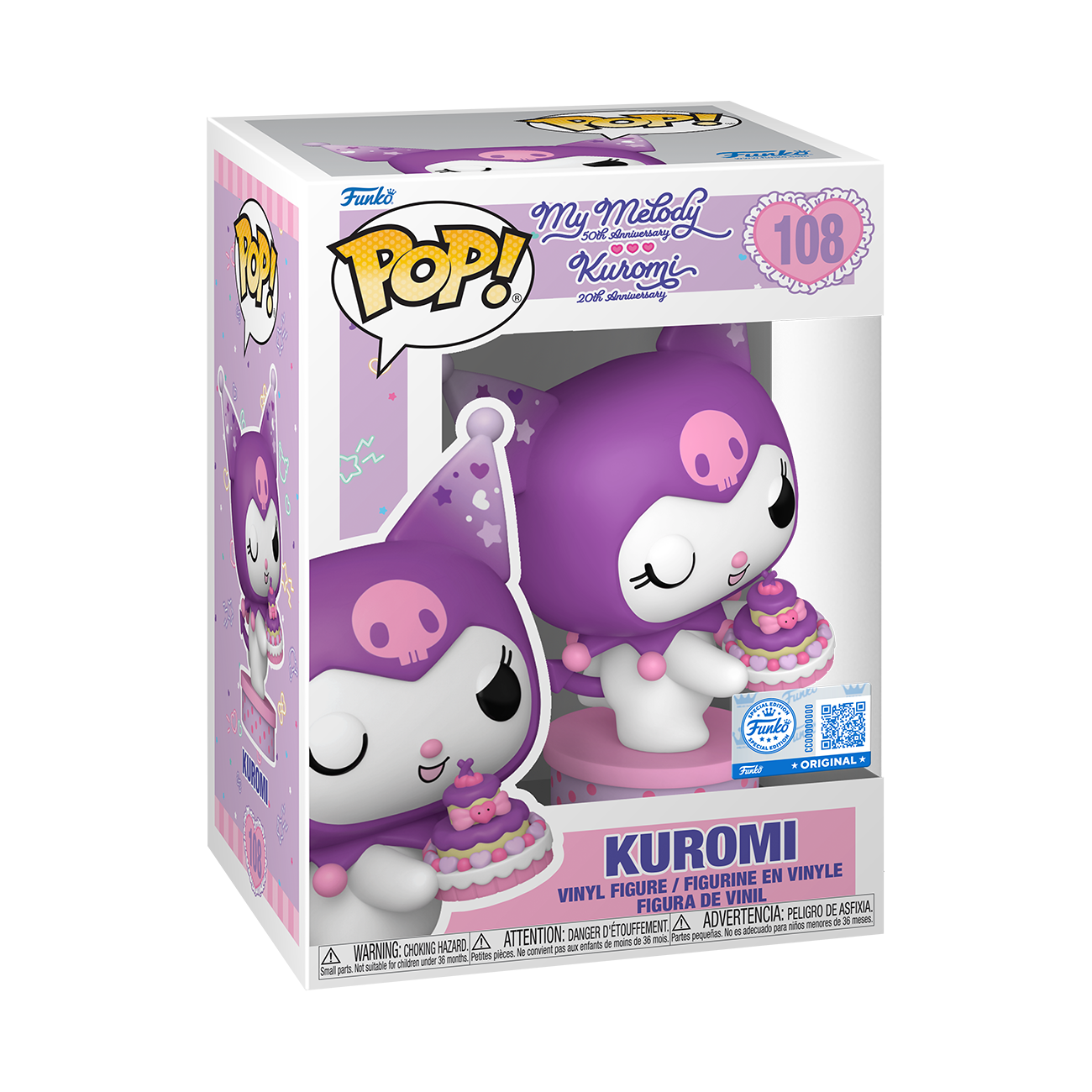 Gather your Hello Kitty and Friends lineup and get ready to celebrate two very special occasions: the 50th Anniversary of My Melody and the 20th Anniversary of Kuromi! This adorable POP! Kuromi is looking to sweeten your Sanrio collection with a celebratory cake! Vinyl figure is approximately 4.6 in (11.7 cm) tall.