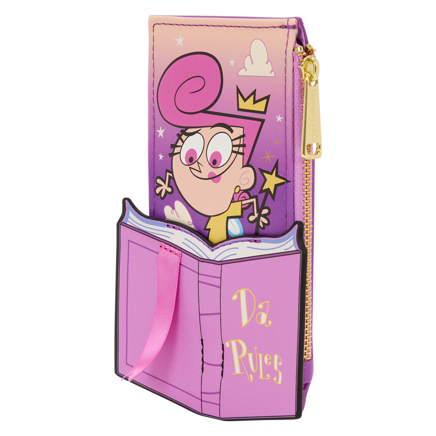 On the front, you’ll find Wanda reading a book of “Da Rules.” You’ll find embossed details and a real satin ribbon bookmark! Turn it around to find Cosmo on the back, along with four card slots! It’s the perfect little accessory to show off one of your favorite shows!